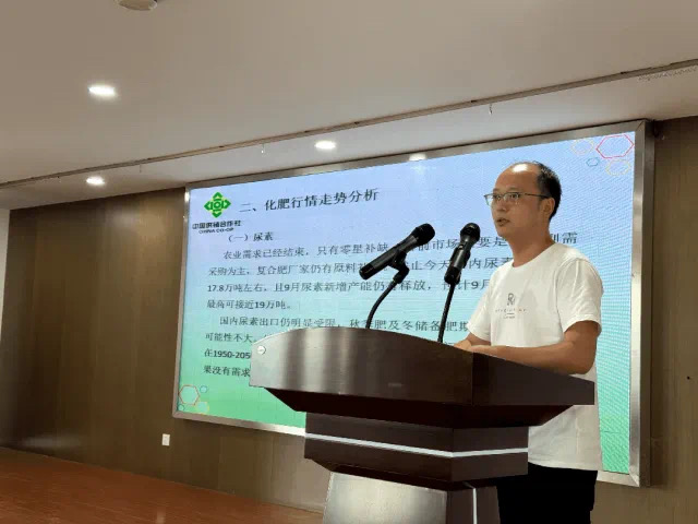 會議伊始,公司副總經理、化肥公司負責人曹金鋒首先作了發言。曹金鋒回顧了化肥業務在旺季中的銷售情況,深入分析了市場環境的變化及其對公司業務的影響。他提到,盡管市場行情波動較大,公司依然通過精準的市場定位和靈活的銷售策略,實現了化肥銷售的穩步增長。這不僅反映了公司在農資行業中強大的市場適應力,也展現了員工們在大戶客戶開發和零售渠道維護中的不懈努力。未來,化肥公司將繼續以市場為導向,強化產品組合,提供更具針對性的農化解決方案,確保全年任務的圓滿完成。